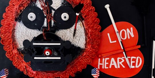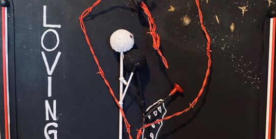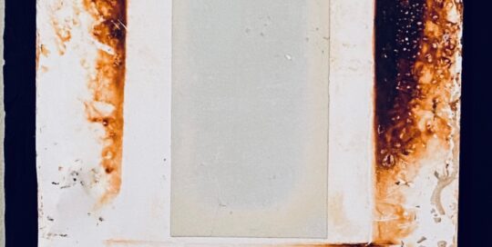 2021 Ceramic, barbed wire on wood.